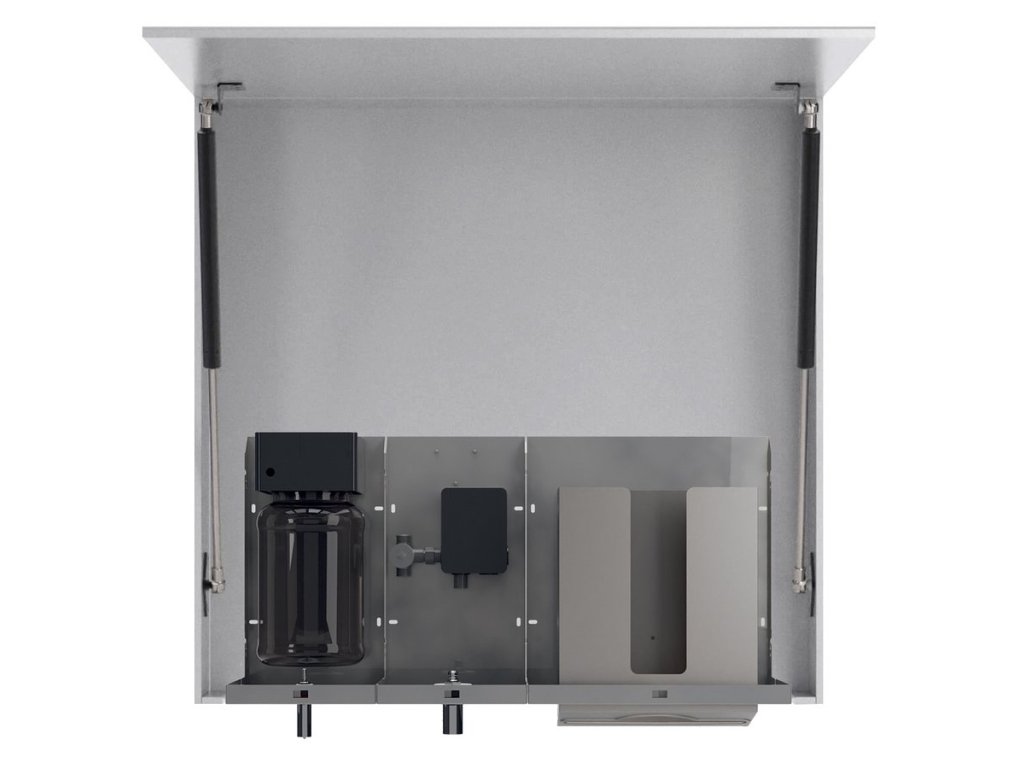 NOFER TOWEL zrcadlová skříňka 100cm se senzorovým dávkovačem mýdla, vodovodní baterií a zásobníkem na papírové ručníky