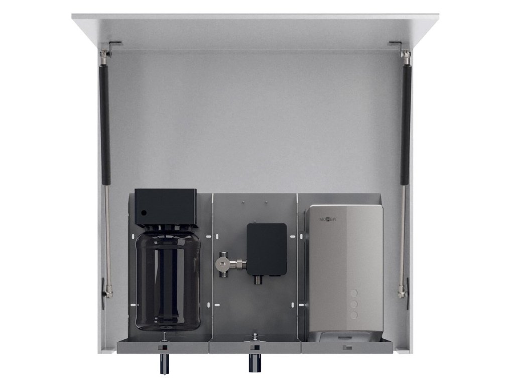 NOFER VELOX zrcadlová skříňka 90cm se senzorovým dávkovačem mýdla, vodovodní baterií a osoušečem rukou