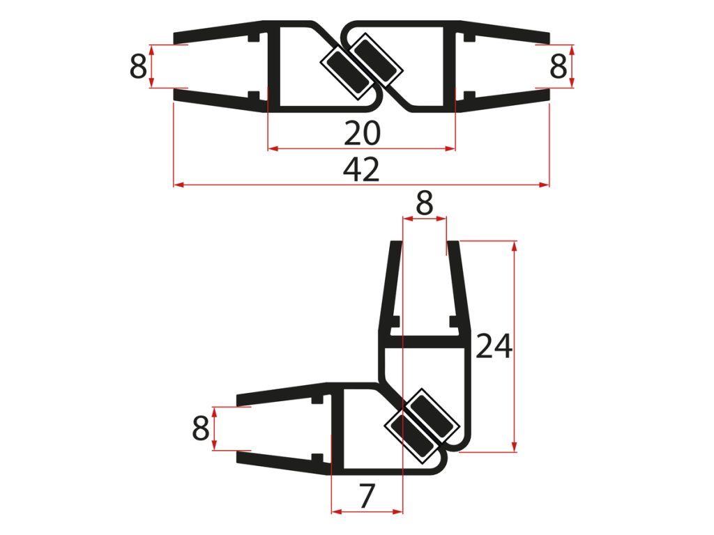 Aqualine Magnetické těsnění 45° 8/8mm skla, černá | MAG01B-8