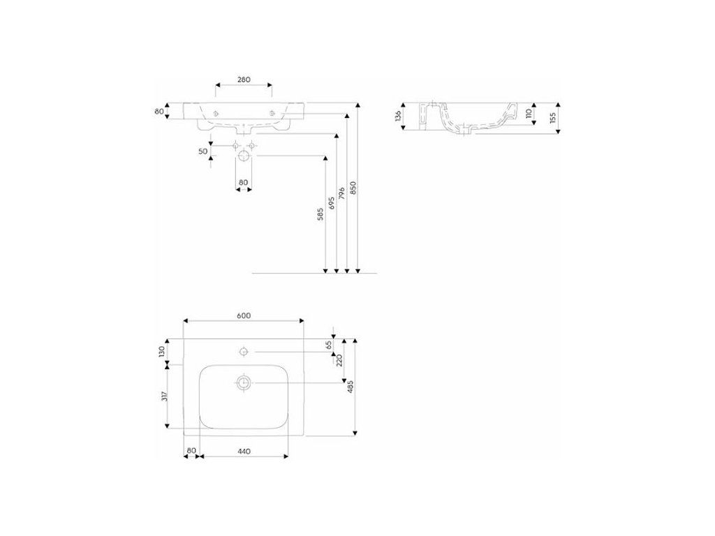 EBS by Geberit Umyvadlo 80 cm s otvorem pro baterii, bílá 502.859.00.1