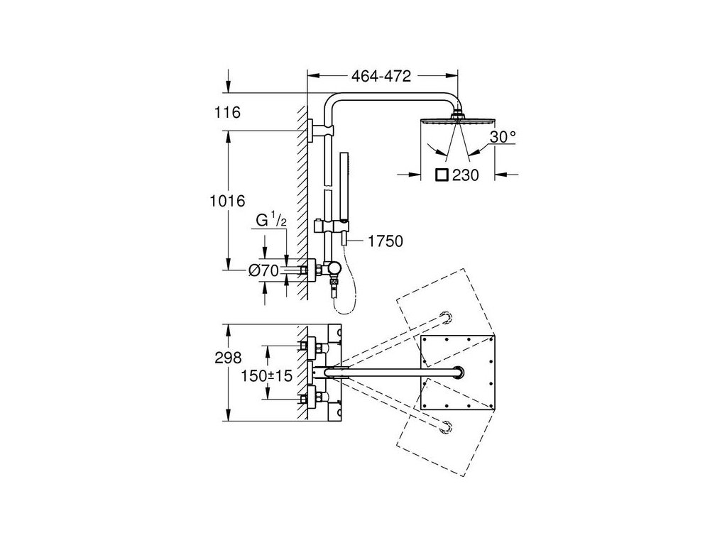 Termostatická baterie tohoto systému je určena pro nástěnnou montáž. Sprchový systém je možné dále rozšířit prostřednictvím přihrádky GROHE EasyReach (26362), která představuje praktické úložiště pro šampony a mýdla. Prodává se zvlášť.