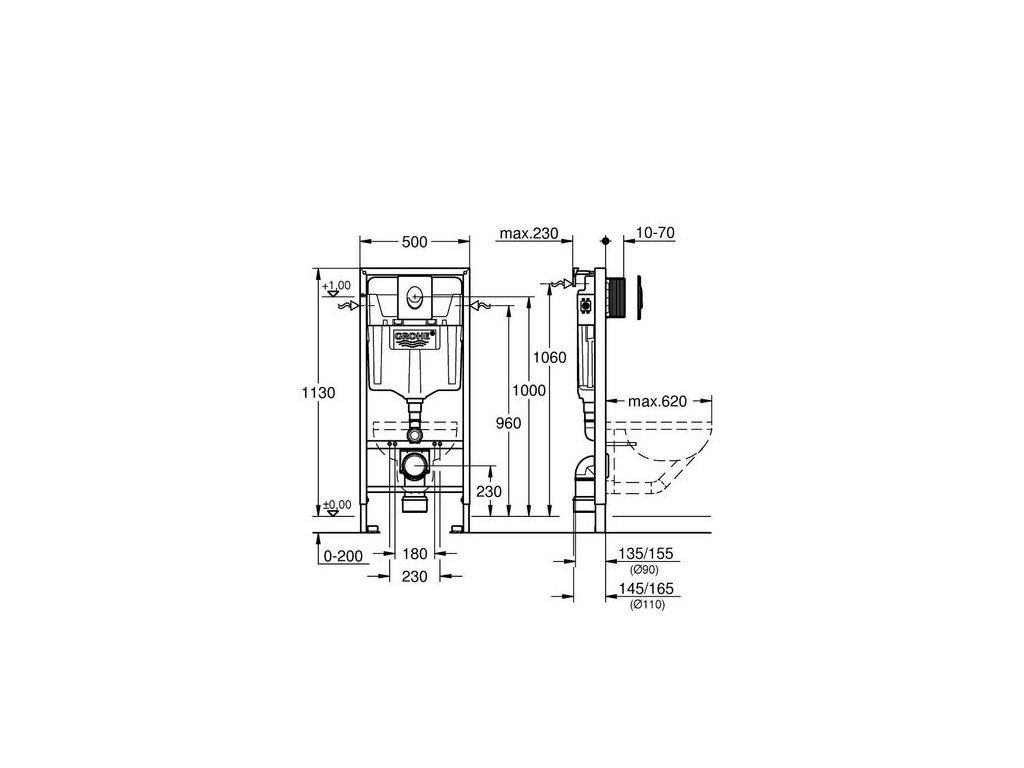 Bezpečnost, snadná montáž a naprostá stabilita jsou pro instalační systém GROHE Rapid SL pro závěsné toalety samozřejmostí. Ocelový rám disponuje certifikovanou nosností přesahující 400 kg a jeho montáž, ať už před stěnu nebo do ní, je díky systému GROHE QuickFix s technologií ToolFree otázkou několika okamžiků a nevyžaduje pro připojení hadice, kontrolní šachty a vodovodní přípojky žádné nářadí. Součástí je také duální splachovací systém GROHE EcoJoy, který umožňuje snížit spotřebu vody až o 50 % a šetří tak životní prostředí. K dispozici je vám výběr z více než 130 atraktivních splachovacích tlačítek. Technologie GROHE Whisper prostřednictvím odhlučněného potrubí a separovaných rozvodů zásadně snižuje přenos hluku do přilehlých pokojů. Před montáží tohoto produktu je zapotřebí zakoupit nástěnné držáky 3855800M.