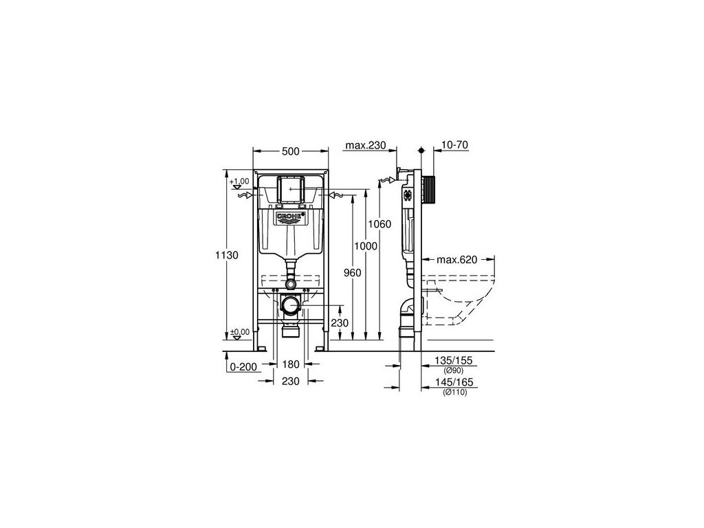 Zvolte instalační systém pro závěsná WC, který nabízí vše, co potřebujete od podomítkové instalace závěsné toalety – zvolte set pro závěsné toalety GROHE Rapid SL 2 v 1, který se pyšní mimořádně snadnou montáží. Ocelový rám disponuje certifikovanou nosností přesahující 400 kg a jeho montáž, ať už před stěnu nebo do ní, je díky systému GROHE QuickFix s technologií ToolFree otázkou několika okamžiků a nevyžaduje pro připojení hadice, kontrolní šachty a vodovodní přípojky žádné nářadí.