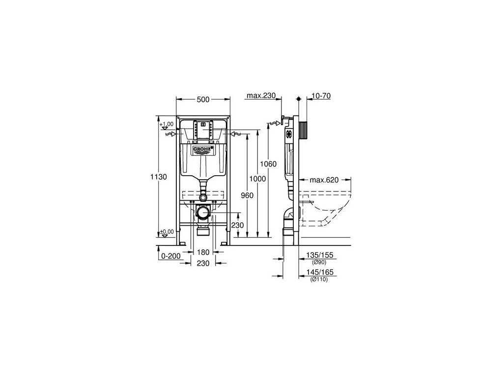 - včetně revizní šachty 40 911 000 pro montáž malých splachovacím tlačítek