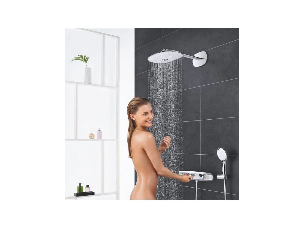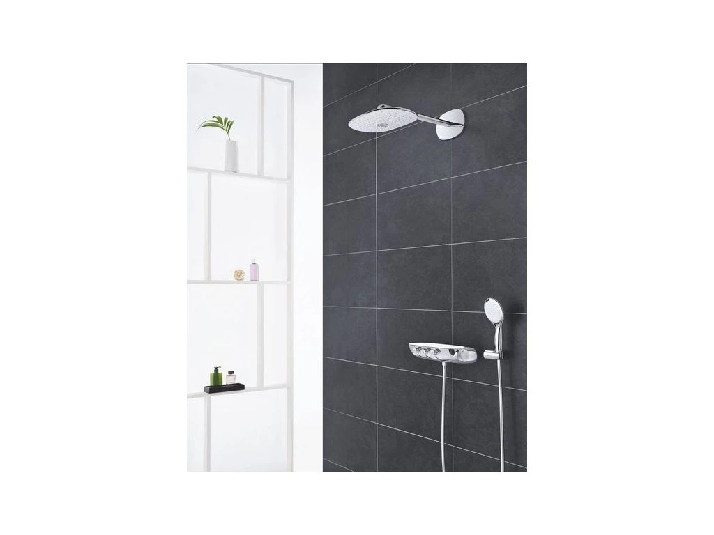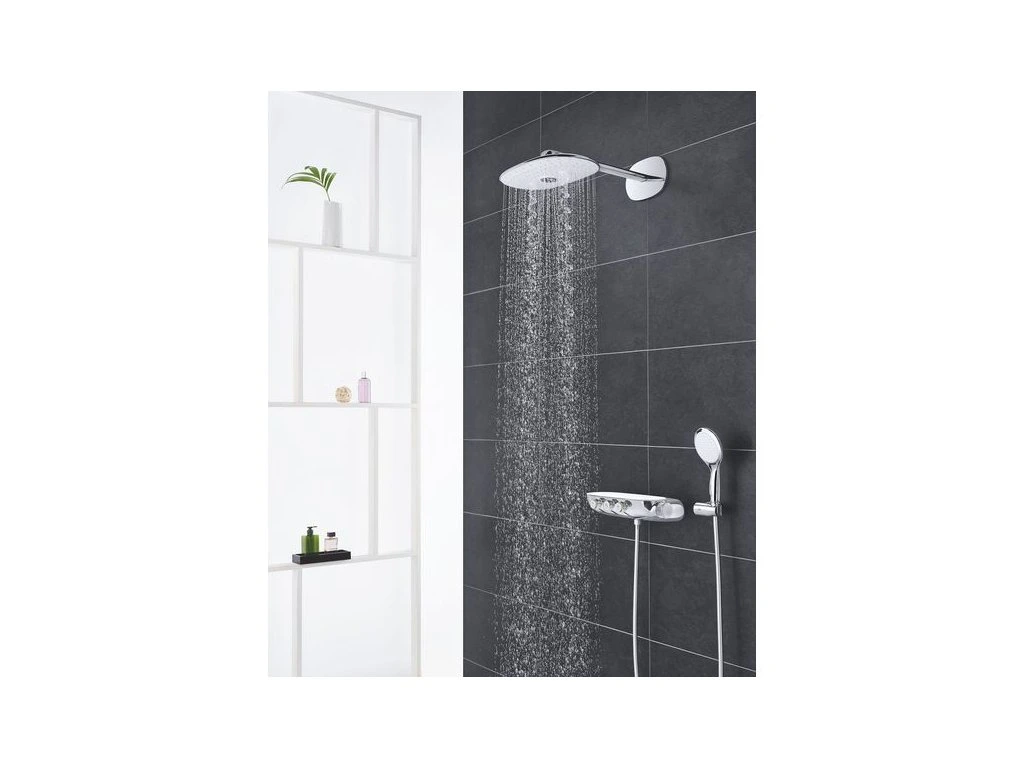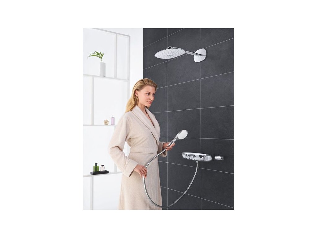 - nástěnný/podomítkový SmartControl termostat, umožňuje změnu mezi: hlavová sprcha Rainshower Duo 360 s horizontálním 450 mm sprchovým ramenem, bílá spodní část sprchy GROHE PureRain/GROHE Rain O2 proud* a TrioMassage