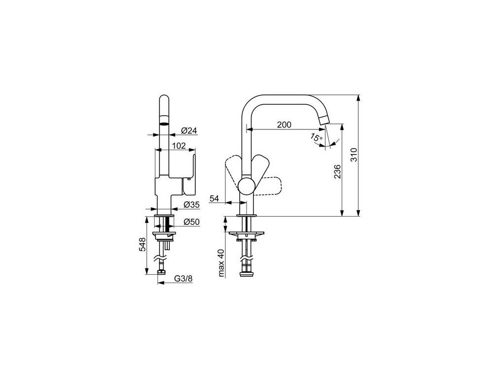 - Velikost DN (jmenovitý rozměr): DN15