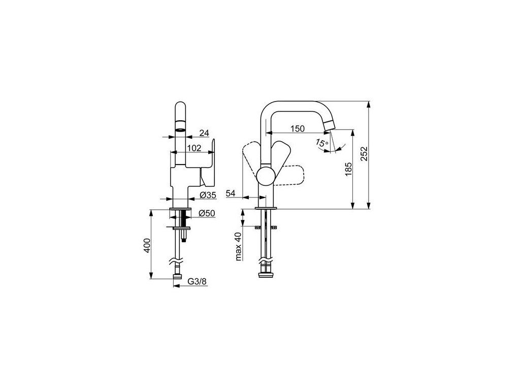 - Mechanické díly: ø 35 mm keramická kartuše pro ovládání teploty a průtoku vody