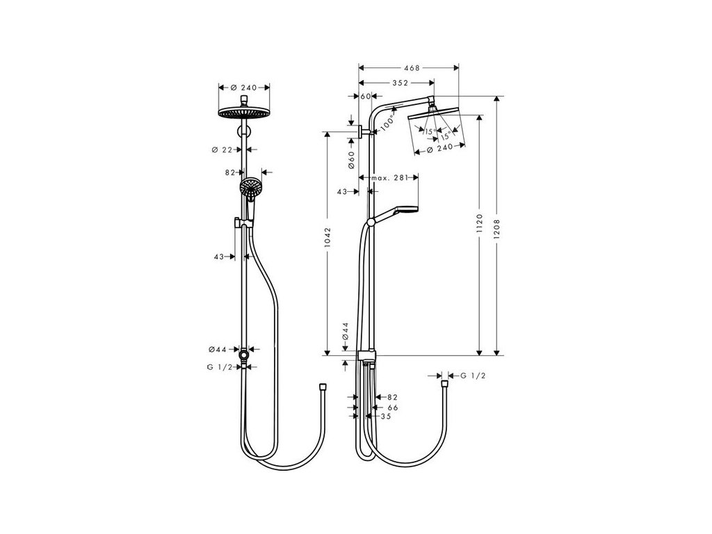 - obsahuje: horní sprcha, ruční sprcha, sprchová hadice, jezdec, přípojka hadice