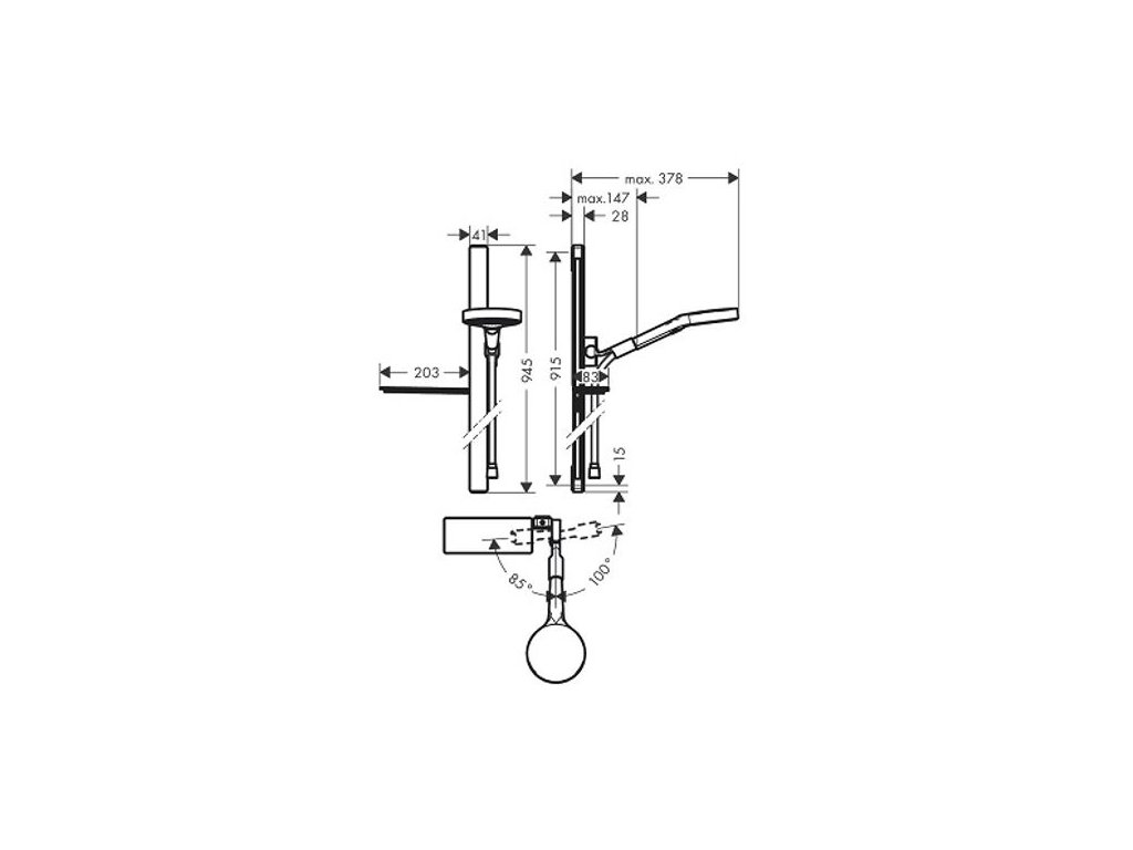 - obsahuje: ruční sprcha, sprchová tyč, sprchová hadice, jezdec, miska na mýdlo