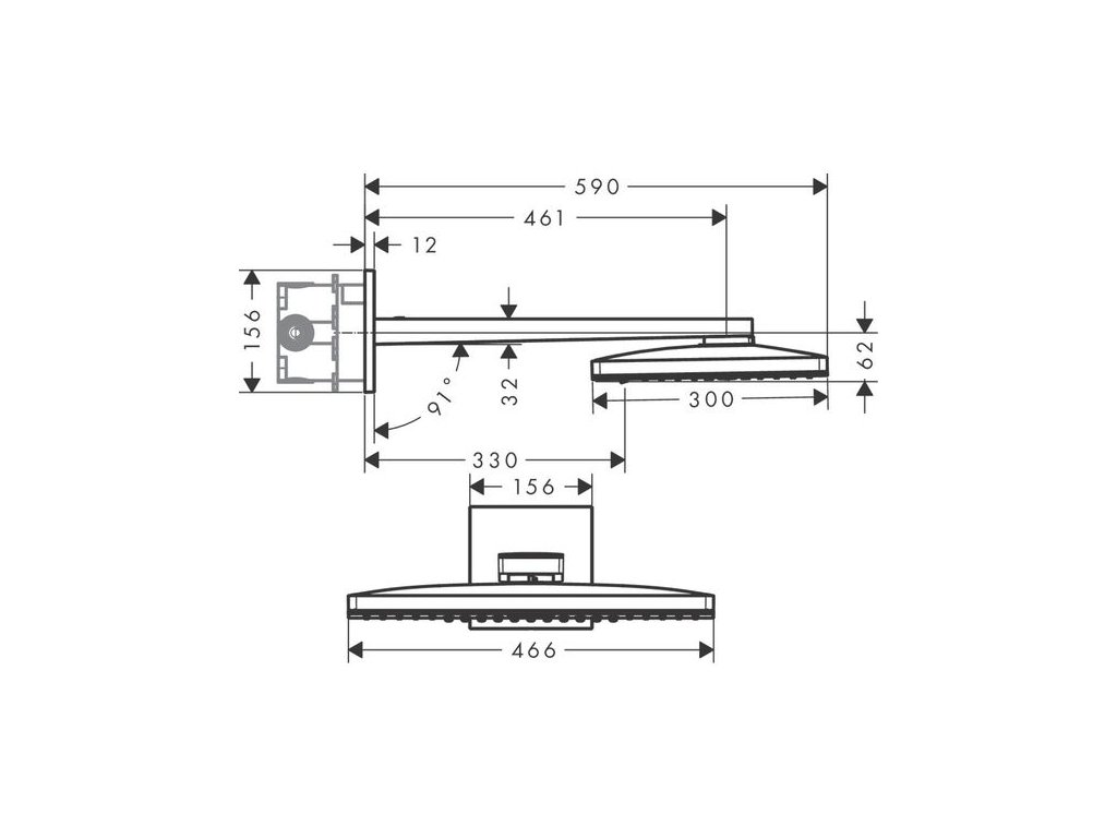 - velikost sprchové hlavice: 466 x 300 mm