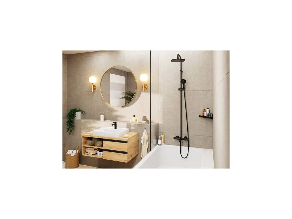 - zahrnuje: horní sprcha, ruční sprcha, vanový termostat, sprchová hadice, sprchová tyč, jezdec