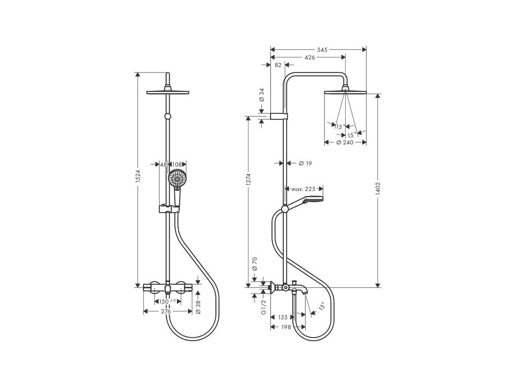 - délka sprchového ramena horní sprchy: 426 mm