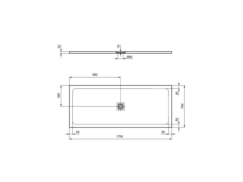 Ideal Standard UltraFlat S+ Sprchová vanička obdélník 170x70x3cm, betonově šedá T5614FS