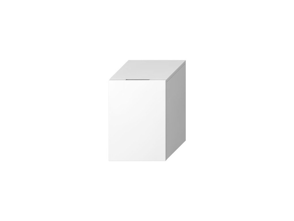 Elegantní bílá nízká skříňka Cubito od známé společnosti Jika, v levém provedení, o velikosti 32x47,2x32,2 cm, s 1 skleněnou policí a s úchytkami zapuštěnými do dvířek, je díky svému designovému provedení vhodnou volbou do každé koupelny.