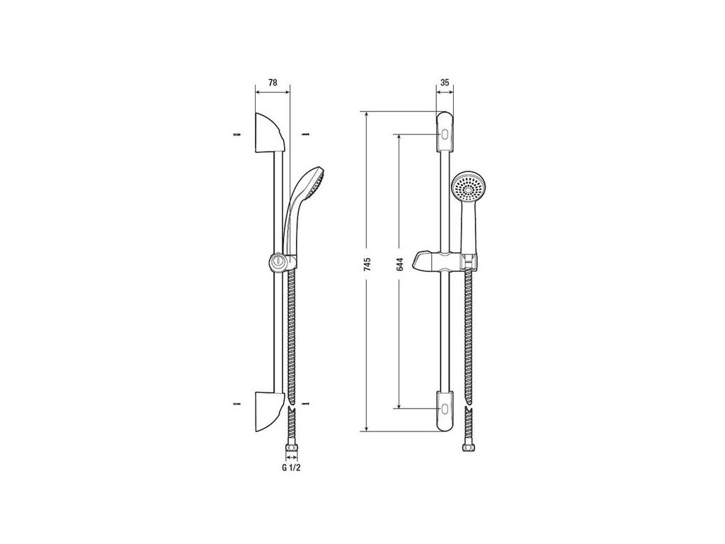 - sprchovou tyč 600 mm s držákem, chrom
