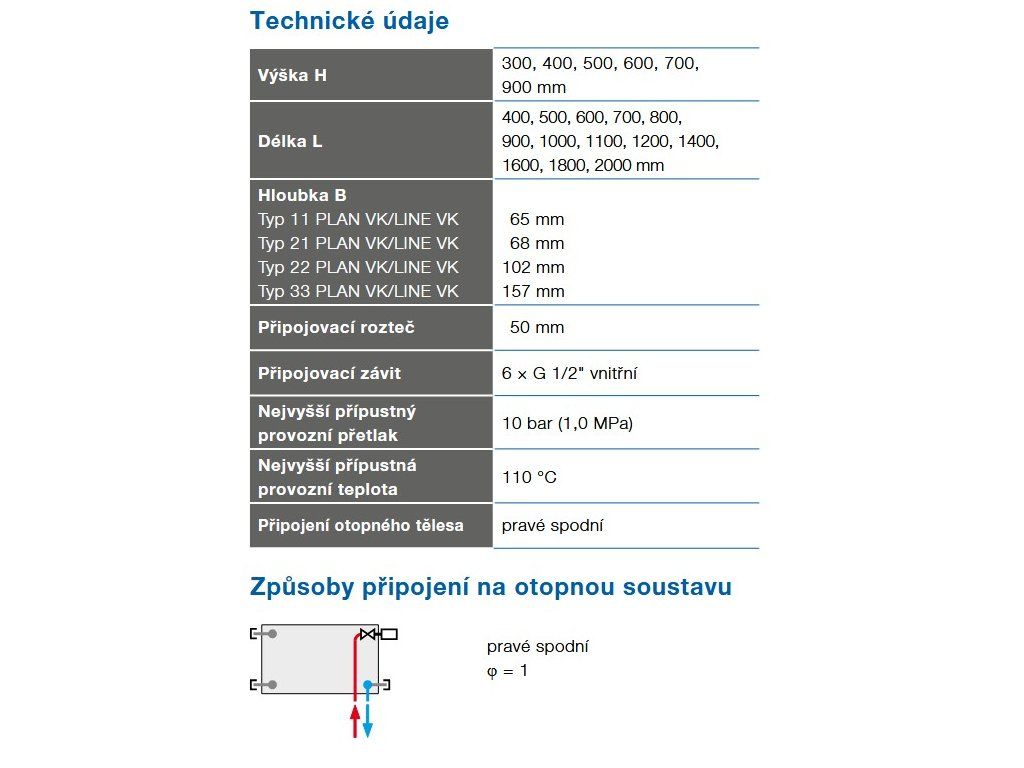 Korado VK PLAN deskový radiátor Radik typ 21 700x1200 mm | 21070120-60P0010