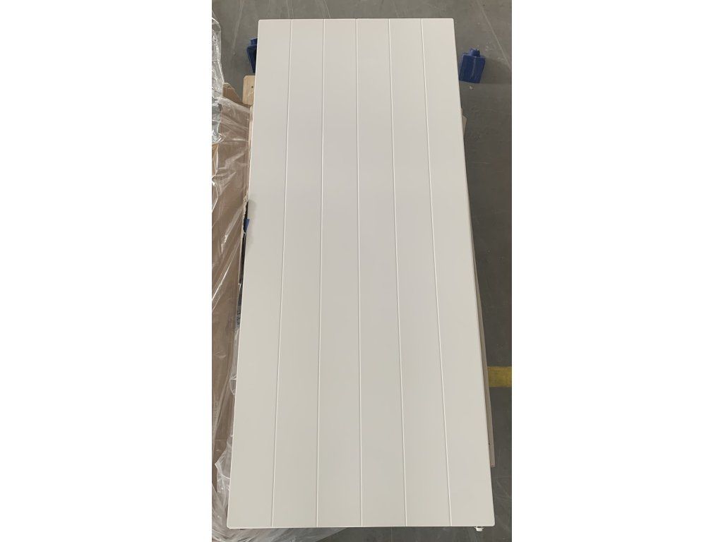 Deskové otopné těleso s hladkou čelní deskou s jemnými horizontálními prolisy a levým spodním připojením