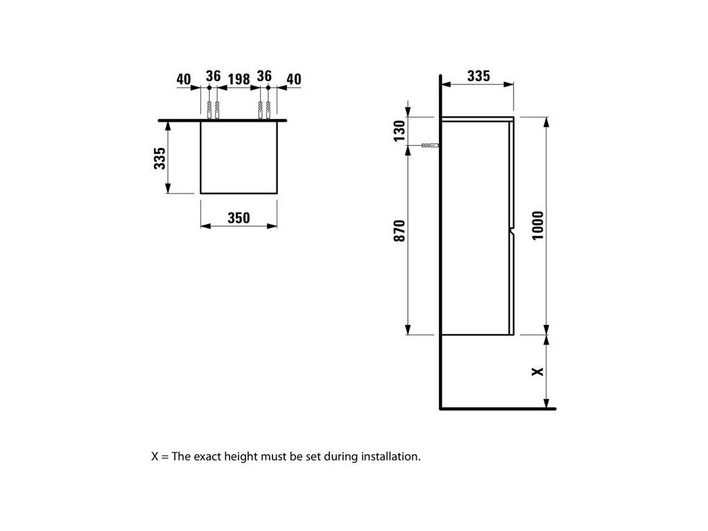 Laufen Pro S Střední skříňka, 2 skleněné poličky, závěsy dvířek vpravo H4831120954751