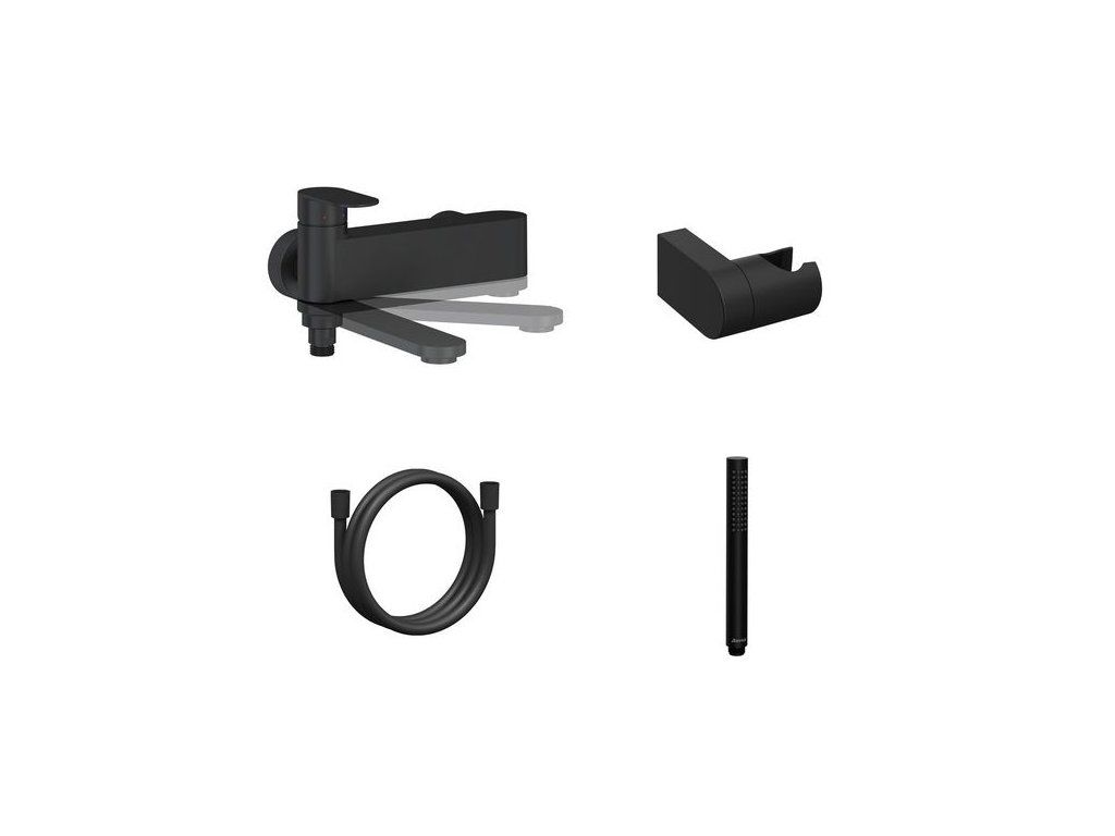 Ravak Chrom II Vanová nástěnná baterie se setem, černá matná CRII022.20BL.+S, X07S120