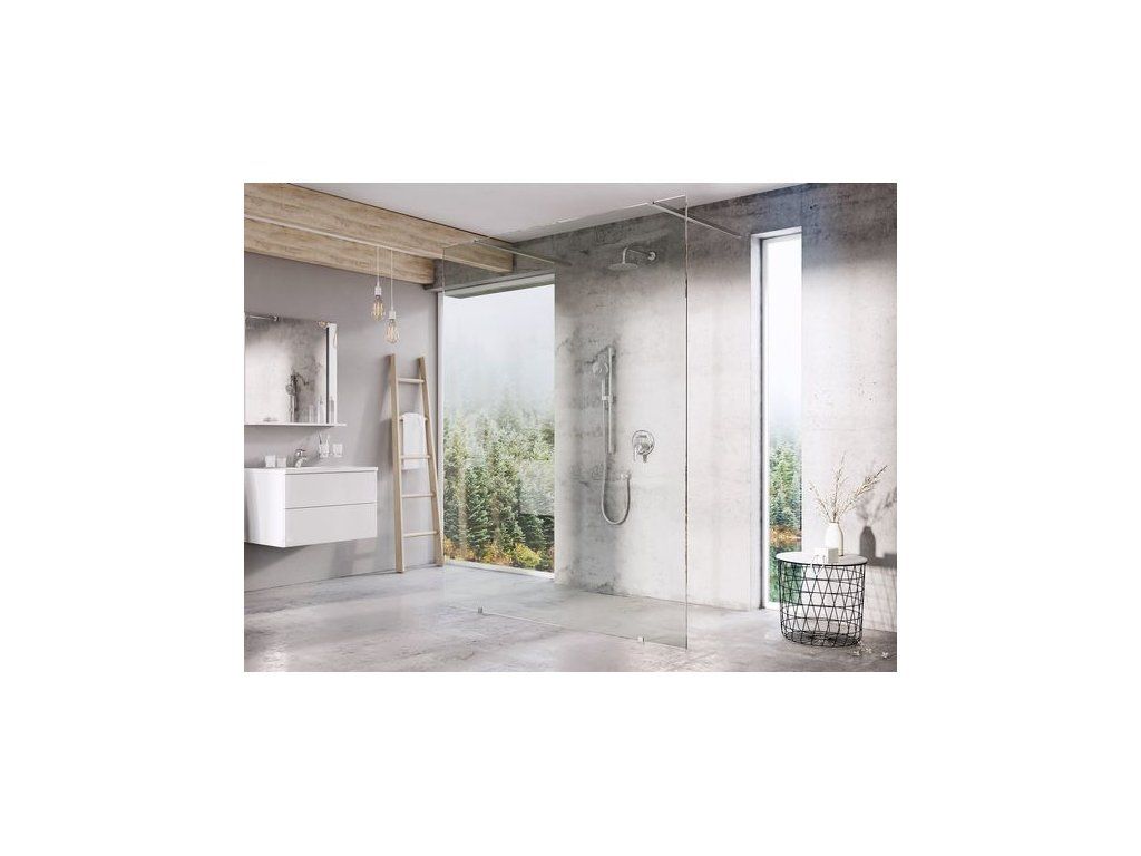 Sprchový kout Walk-In Free tvoří tvrzené bezpečnostní sklo o tloušťce 8 mm. Stabilitu výrobku zajišťují dvě kovové vzpěry, které určují šířku otevřeného vstupu ze dvou stran. Sprchový kout Walk-In Free s lesklou chromovou povrchovou úpravou kovových částí. Doporučujeme instalovat na vaničky Ravak řady Slate Pro a Sandstone Pro, nebo přímo na podlahu se zabudovaným odtokovým žlabem nebo podlahovou vpustí. Balení obsahuje pevnou skleněnou stěnu. Součástí balení jsou podpěrky a kovové vzpěry v lesklém chromovém provedení, které určují šířku vstupu. Univerzální vzpěry s délkou 120 cm lze libovolně zkrátit podle požadované šířky vstupu. Vzpěry se u zdi zakončují kovovou koncovkou, která zakryje řez.