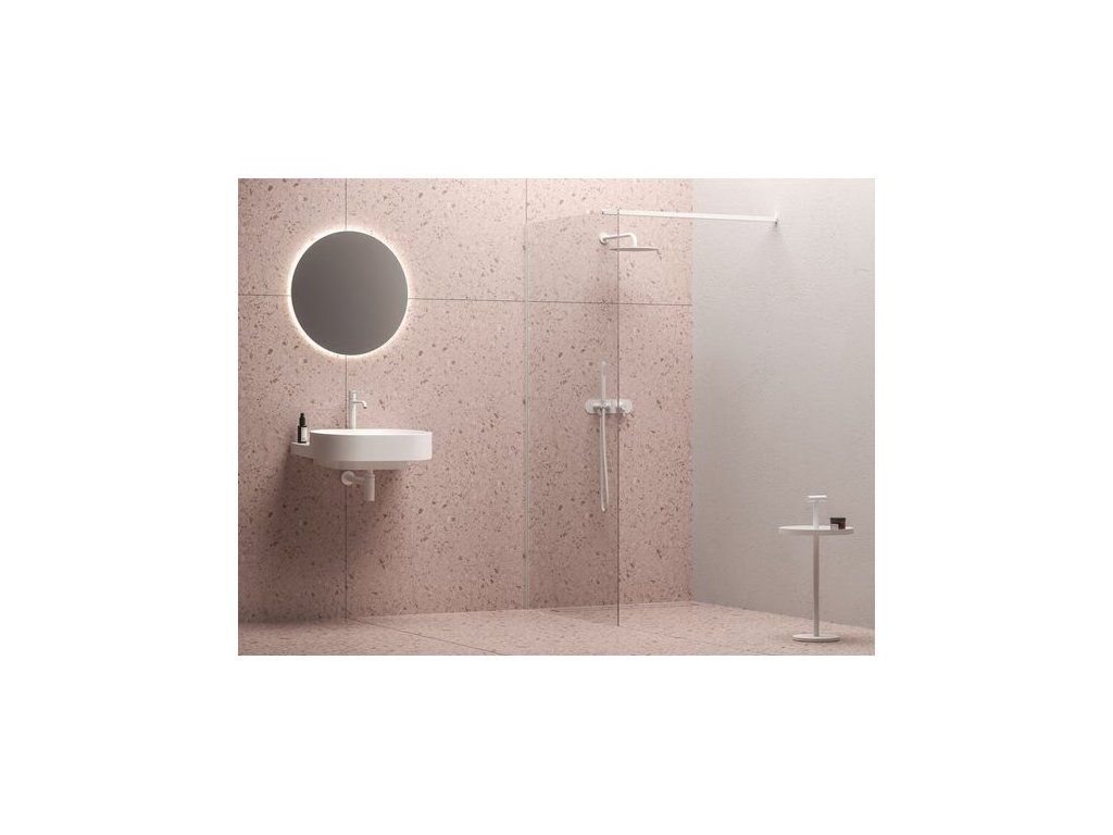 Sprchový kout Walk-In Wall tvoří tvrzené bezpečnostní sklo o tloušťce 8 mm. Stabilitu výrobku zajišťuje kovová vzpěra, která určuje šířku otevřeného vstupu.